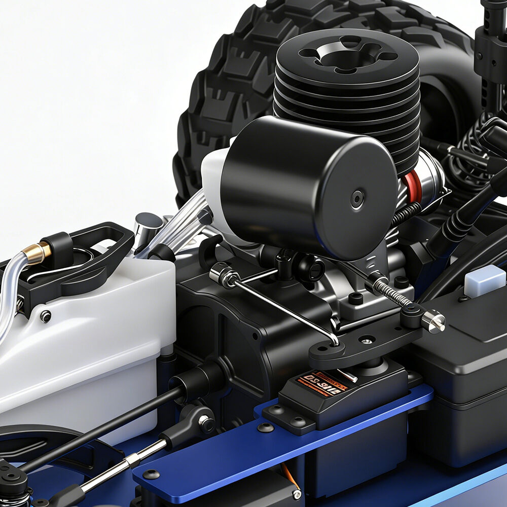 Equipped with a solid 6061-T6 anodized aluminum 3mm chassis plate, this nitro Truggy delivers extreme rigidity and race-winning stability. The hardened chassis provides exceptional impact resistance and virtually zero flex, ensuring precise handling at high speeds. Combined with full 4WD traction and professional nitro power for ultimate performance.