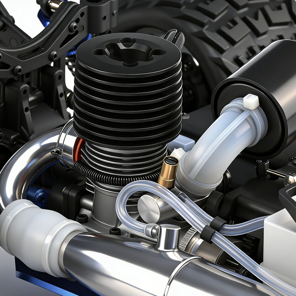 Equipped with a powerful .21 engine and leak-proof 125cc large-sized fuel tank with a long overflowed aluminum material pipe, allowing your car to continue driving for up to 20 minutes. The aluminum pipe is resistant to high temperature and corrosion. We also have designed a dust cover for the air filter to ensure longer use. Overall chassis design feels more sturdy and stronger.