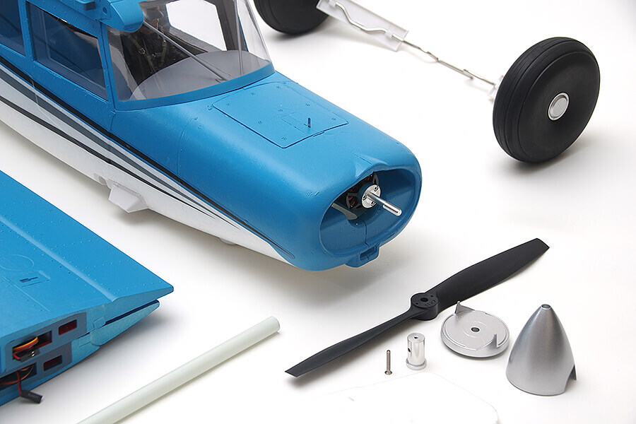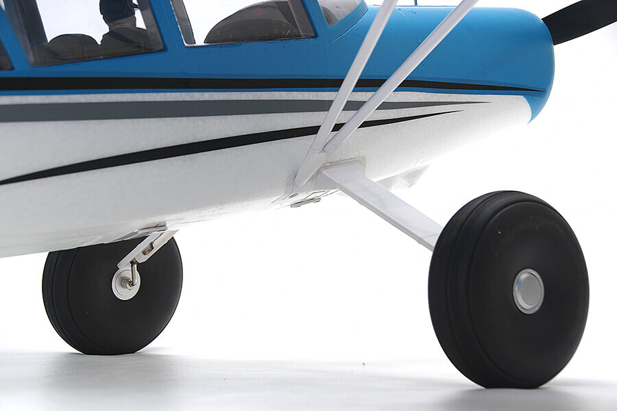 Maule can be equipped with two sets of landing gear - a tire set and a float set, for conquering any terrain year-round. The pre-installed 3S/4S compatible brushless power system delivers plenty of performance for flying from smooth or rough surfaces using the oversized wheels, or from water using the included float set.