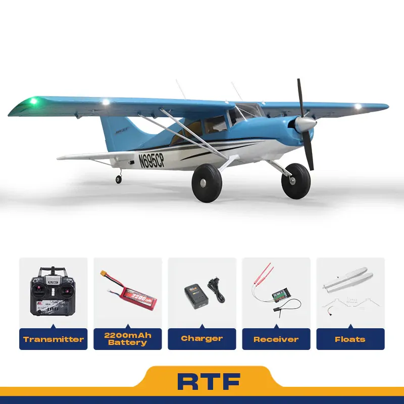 RTF (Ready to Fly) airplanes come with everything you need to fly in the box. A transmitter, receiver, battery, charger, and all other required electronics are included and pre-installed from the factory.