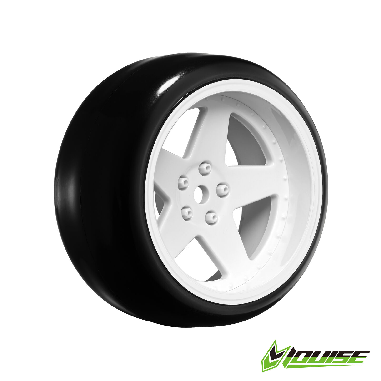 5 SPOKE/GLOSS WHITE Pre mount rim & tyres 2,4,6,8mm OFFSET HEX 12mm 4pcs