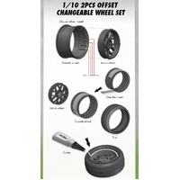 14 SPOKE/GLOSS BLACK Pre mount rim & tyres 2,4,6,8mm OFFSET HEX 12mm 4pcs