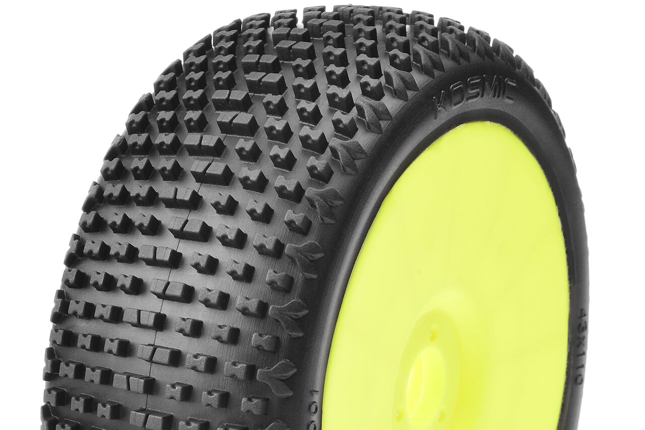 Captic Racing - KOSMIC - 1/8 Buggy Tires Mounted - CR-4 (Super Soft) Racing Compound - Yellow Rims - 1 Pair