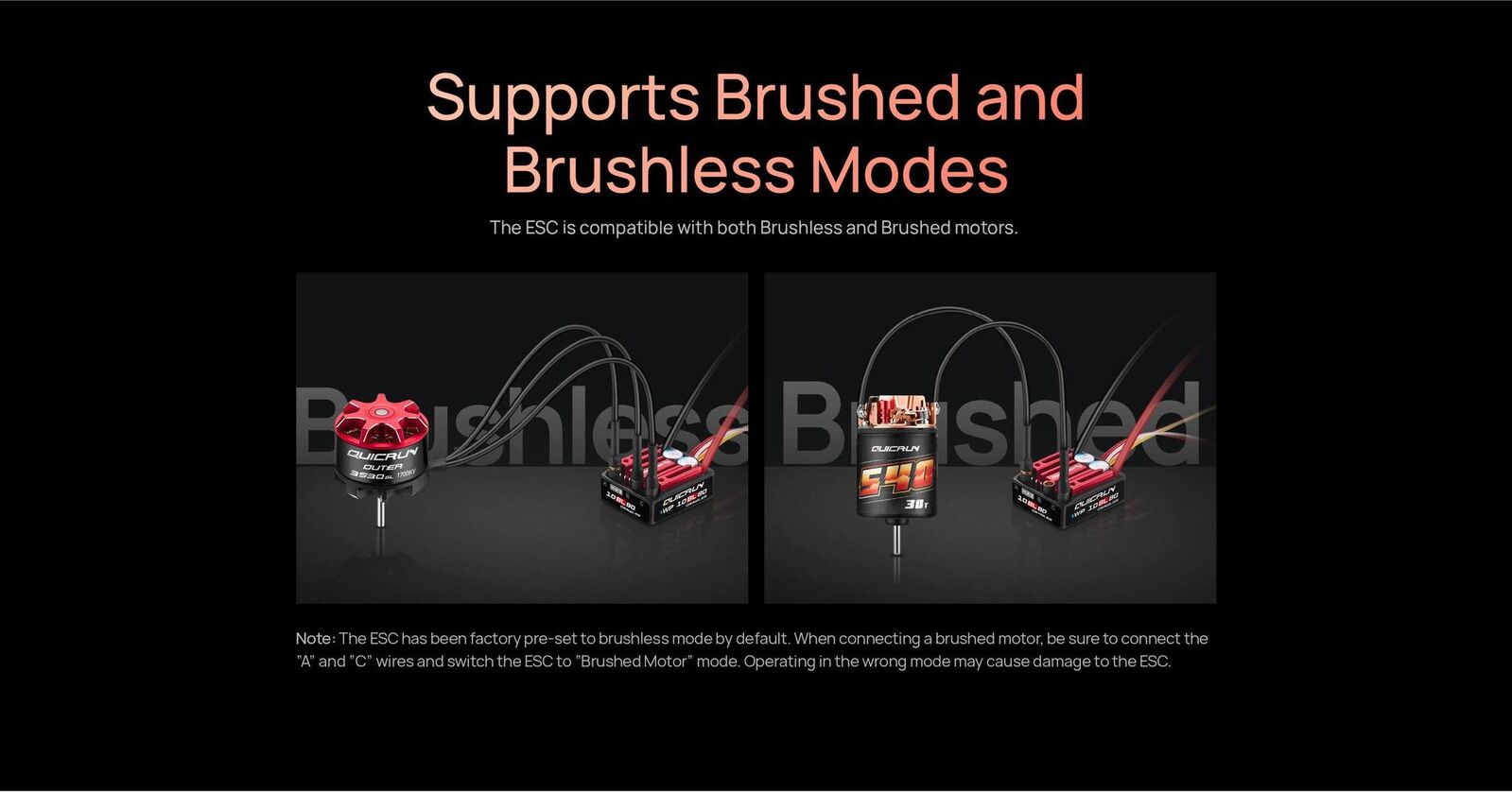 - Outer 3530SL sensorless outrunner motors; 540, 555 including other brushed motors