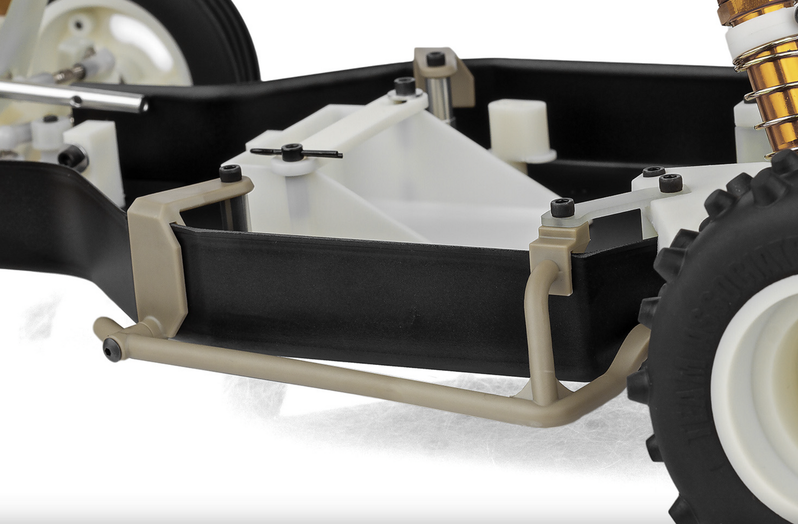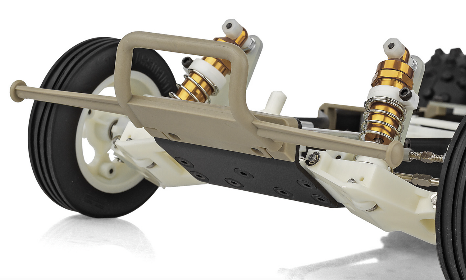 Retro-inspired styling is brought to life with a new molded front bumper and side guards, blending vintage looks with modern durability. At its core is the legendary Stealth® A.T.C. transmission with ball differential, delivering smooth, efficient power transfer and proven reliability. Featuring genuine Team Associated white molded and dyable plastics from front to back.