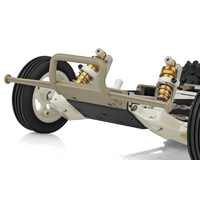 - Long travel, fluid-filled anodized aluminum coil-over shocks