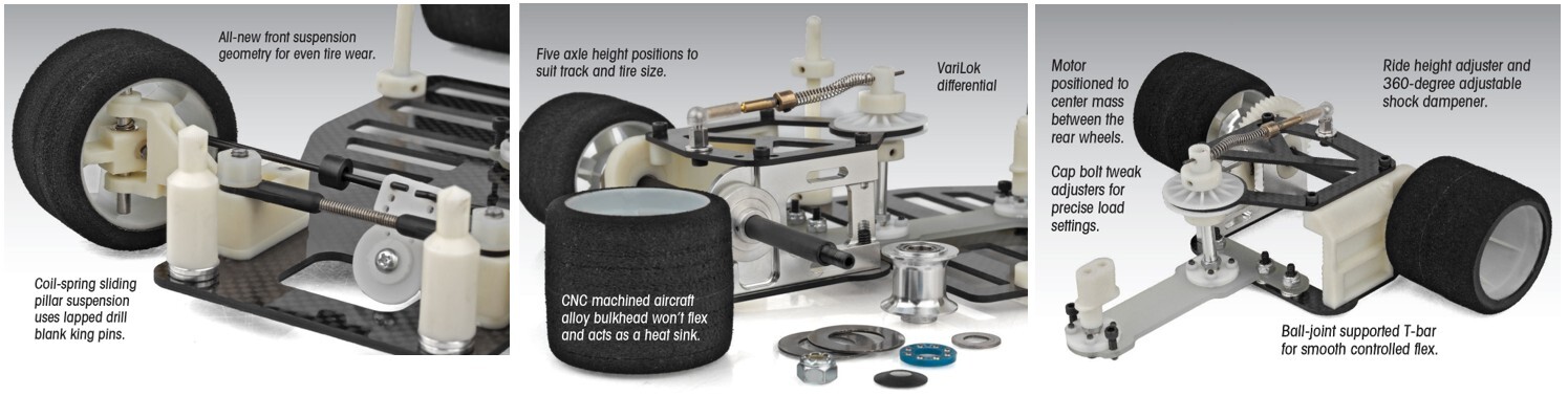 - Authentic RC12 front suspension geometry for even tire wear
