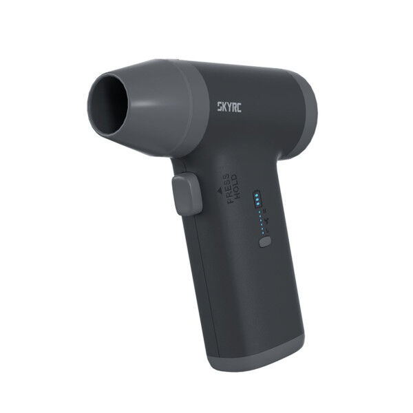 The SkyRC RC AirDuster is the first cordless air duster designed specifically for RC hobbyists. Powered by a brushless high-speed motor running at 80,000 RPM and two 21700 high-rate Li-Ion cells with a total capacity of 8000 mAh, the AirDuster delivers a powerful airflow with up to 25 A peak current. Whether blowing dust and sand off the chassis, cooling down hot motors and ESCs between runs, drying the model after wet races, or cleaning connectors, batteries and electronics – the AirDuster is the versatile tool for every pit box.