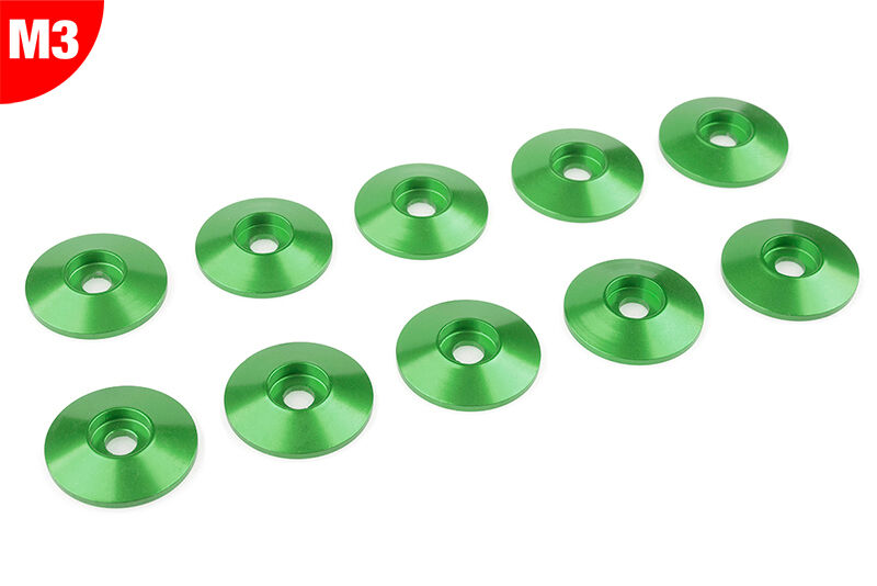 Team Corally - Aluminium Washer - for M3 Button Head Screws - OD=15mm - Green - 10 pcs