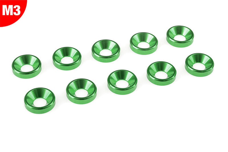 Team Corally - Aluminium Washer - for M3 Flat Head Screws - OD=8mm - Green - 10 pcs
