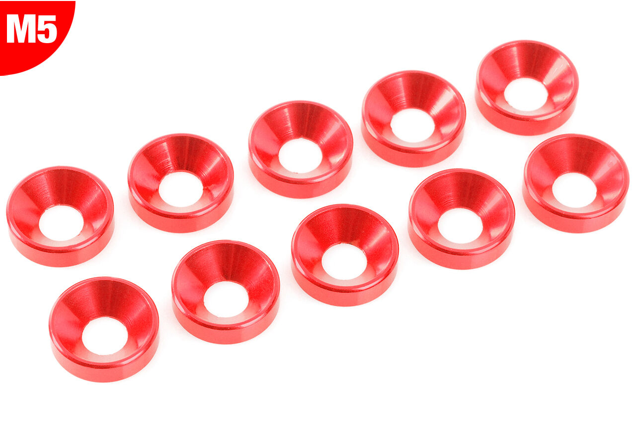 Team Corally - Aluminium Washer - for M5 Flat Head Screws - OD=12mm - Red - 10 pcs