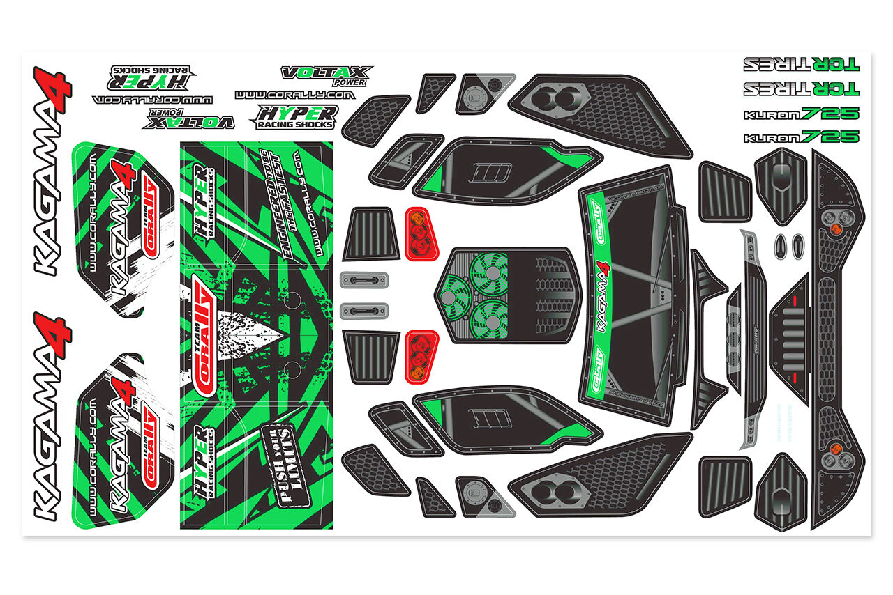 Team Corally - Body Decal Sheet - Kagama 4 - Pre-Cut - Color Green - 1 Pc