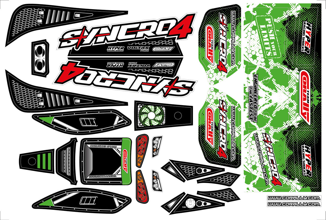Team Corally - Body Decal Sheet - Syncro 4 - Pre-Cut - Green Color - 1 Pc