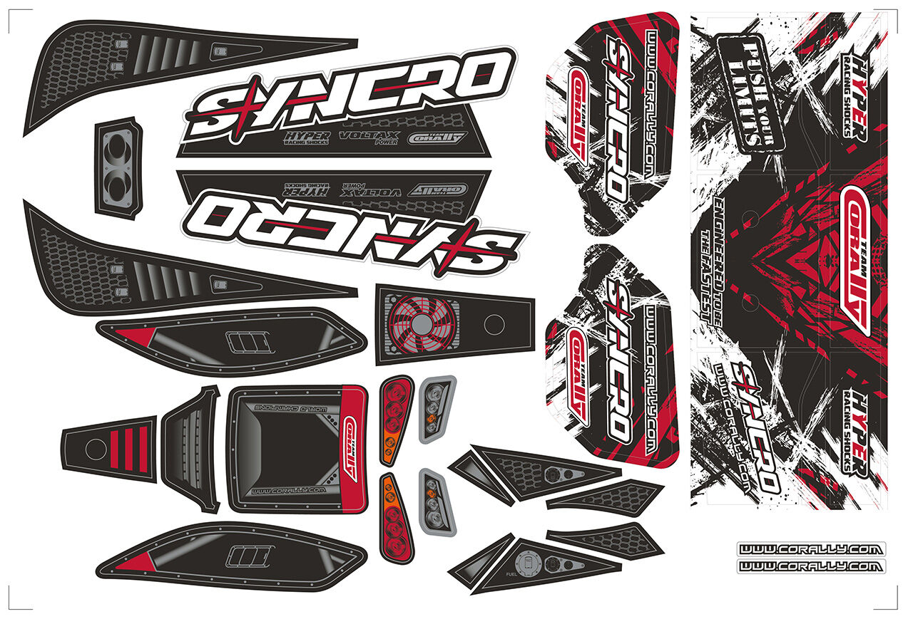 Team Corally - Body Decal Sheet - Syncro - Pre-Cut - Red Color - 1 Pc