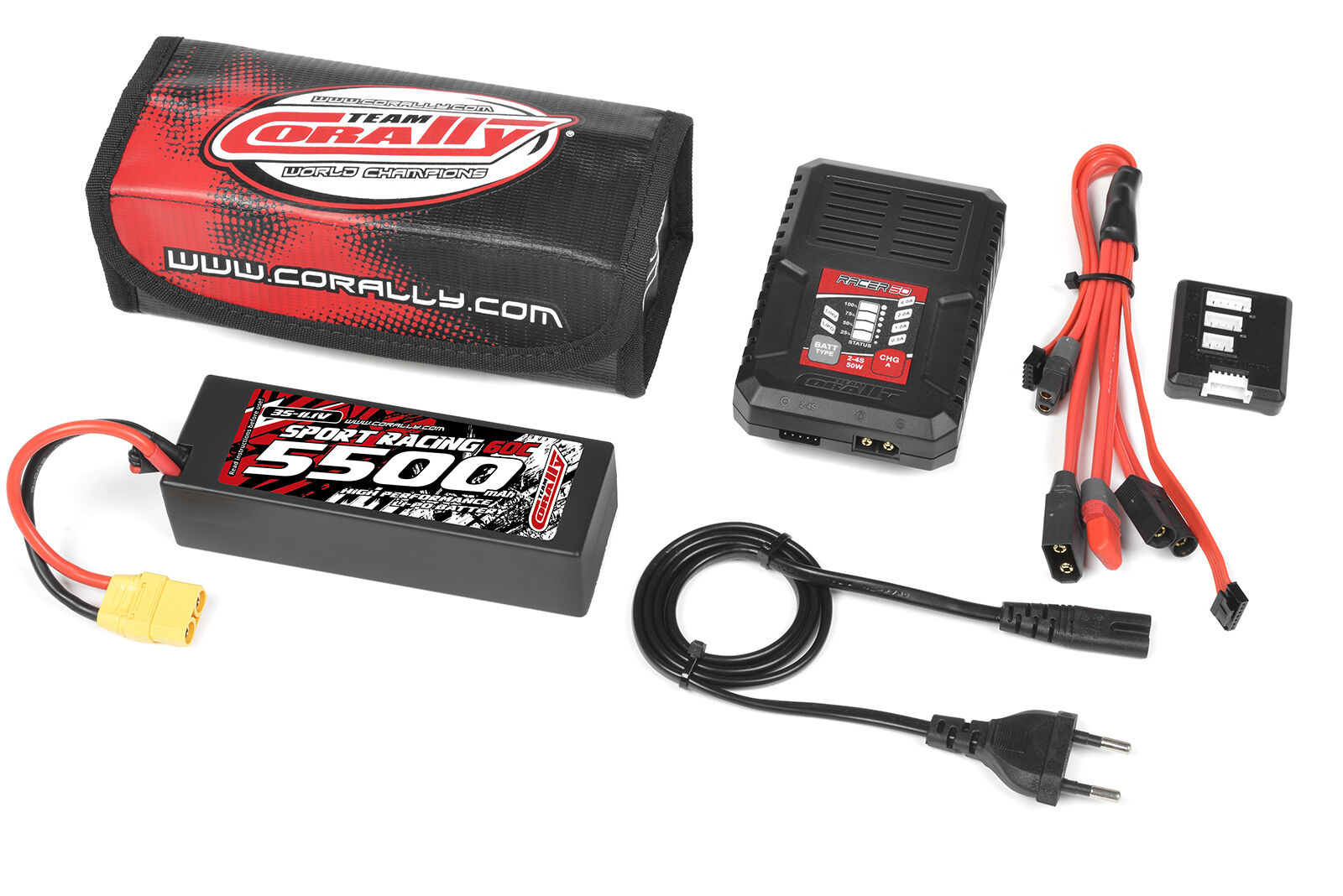 Team Corally - Energy Pack - Lipo 60C - 5500Mah - 3S - XT-90 - Hard Case + Racer 50 - 2-4S AC Charger + Lipo Safety Bag + Charge-Balance Lead