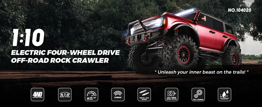 WLtoys 104020 1:10 electric climbing car full simulation structure design, full real car handling feeling, The cool lights of the whole car allow you to have a different visual experience.