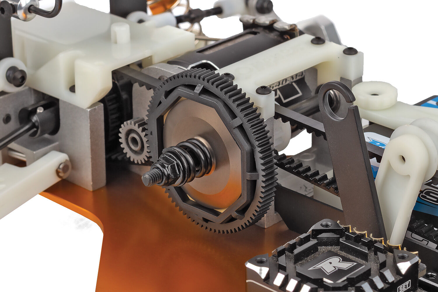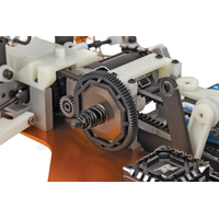 With a very efficient 2-belt drive system, the YZ-10 includes a gear differential, slipper clutch, and universal drive shaft. Saddle mount battery pack for better weight distribution.